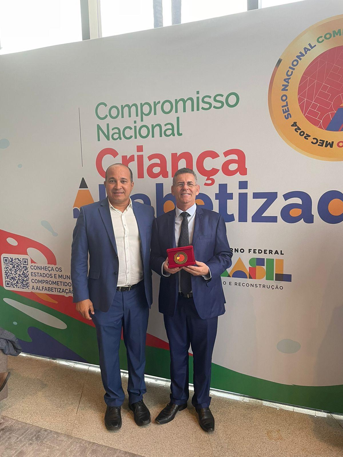 O prefeito de Ibateguara, Geo Cruz, recebeu em Brasília o Selo Nacional "Compromisso com a Alfabetização", reconhecimento concedido pelo Ministério da Educação (MEC) a municípios que se destacam na alfabetização infantil.