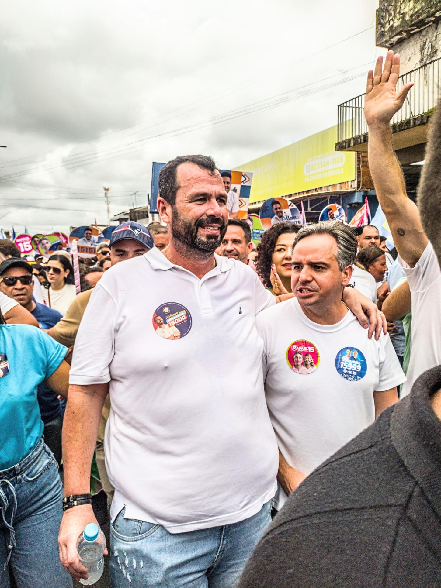 A caminhada contou também com a presença do candidato a prefeito de Maceió, Rafael Brito, e sua vice, Gaby Ronalsa, além do governador Paulo Dantas, dos deputados Sílvio Camelo e Cibele Moura, do ministro dos Transportes, Renan Filho, e de várias lideranças comunitárias.